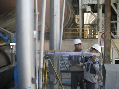 4- نقوم بقياس شكل القشرة، والاهتزاز، وهجرة الإطارات، والزحف، وميل البكرات، وانحدار التربة، ونسبة البكرات إلى قطر الإطارات في الأفران والمجففات