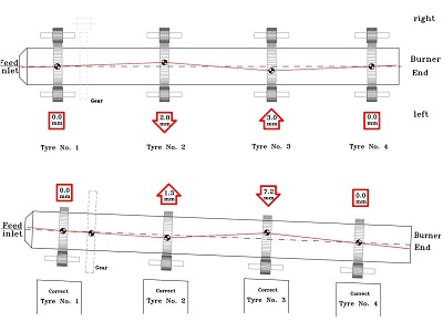 kiln and dryer alignment cause low tempreture in bearings , increase brick life time , decrease repair cost